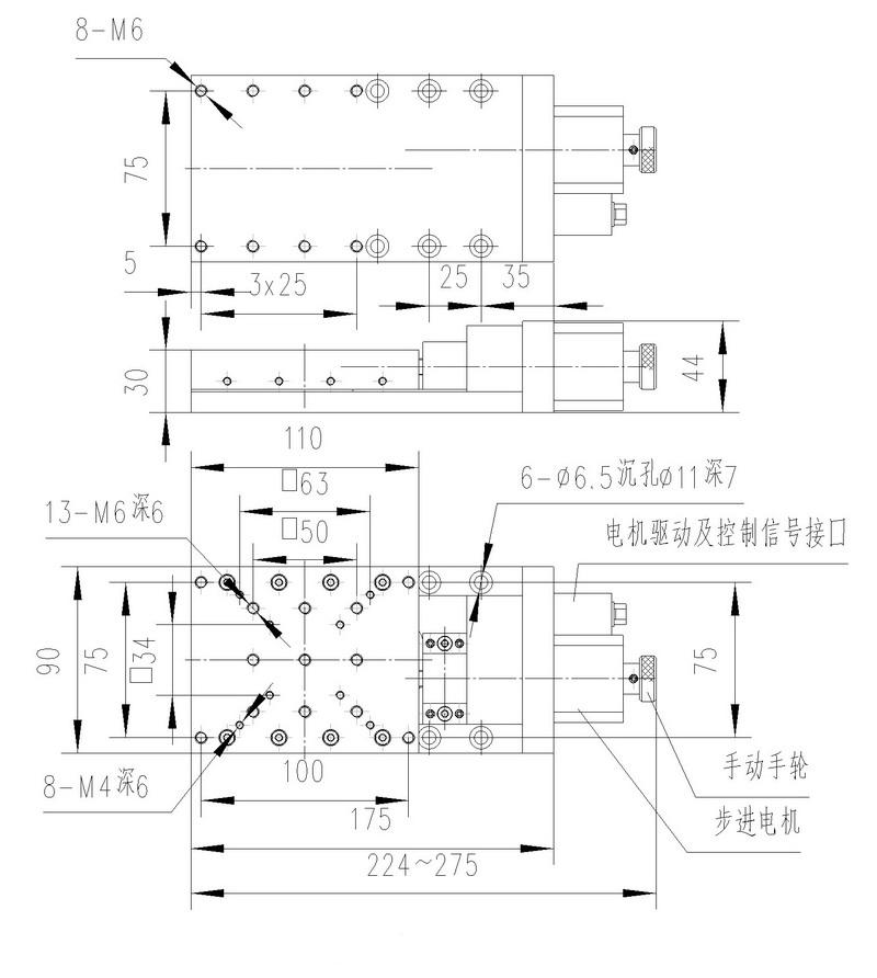 ·此型電移臺(tái)面高度30mm最高處僅44mm,特別適合空間高度要求小、行程小、分辨率高.